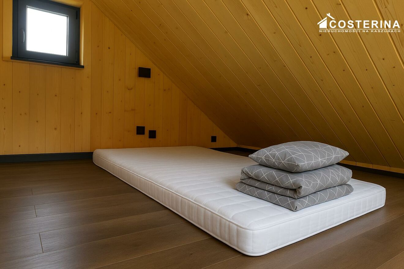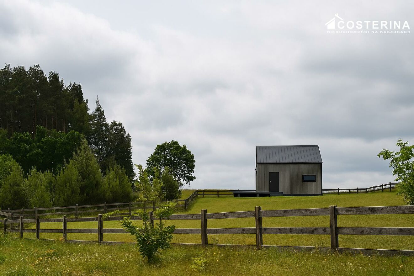 OPIS OFERTY Nowy dom rekreacyjny typu "stodoła" z przeszklonym frontem i dużym tarasem, położony w samym sercu Kaszub, na uboczu wsi Borzestowska Huta, zaledwie 500 metrów od linii brzegowej Jeziora Raduńskiego. To idealna propozycja zarówno do prywatnego wypoczynku, jak i jako inwestycja pod wynajem. Dom zachwyca nowoczesną i minimalistyczną bryłą, wykonany został w technologii szkieletowej z drewna klejonego. Przestronny, jasny salon z dużym przeszkleniem i wyjściem na taras tworzy komfortową przestrzeń dzienną. Wnętrze obejmuje także aneks kuchenny (wyposażony), łazienkę z prysznicem oraz antresolę przygotowaną pod sypialnię. Zainstalowana klimatyzacja podnosi komfort użytkowania. Do wykończenia pozostały jedynie schody prowadzące na antresolę. Działka o powierzchni 1220 m jest ogrodzona, zapewnia prywatność i daje możliwości dalszego zagospodarowania.